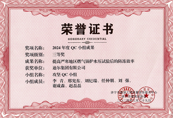 公司榮獲“提高嚴寒地區(qū)燃氣鍋爐水壓試驗后的防凍效率”市級QC成成果