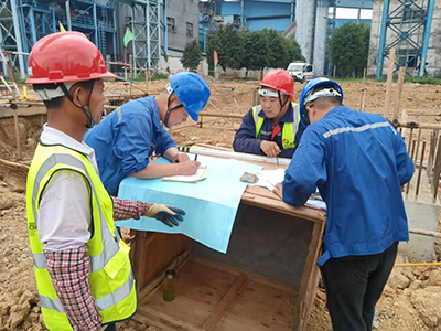 由第一公司承建的陽春市陽春新鋼鐵余熱資源綜合利用發(fā)電項(xiàng)目發(fā)電工程是首次與中國能源建設(shè)集團(tuán)廣西電力設(shè)計(jì)研究院有限公司合作的項(xiàng)目,對(duì)于公司有著重要的戰(zhàn)略意義。由于前期圖紙的變更、出圖的延緩及人員搭配等不良因素,進(jìn)度的跟進(jìn)收到了嚴(yán)重影響。為此,項(xiàng)目部及時(shí)調(diào)整施工步伐,編排施工日計(jì)劃,合理組織人員,要求施工班組不等、不靠。